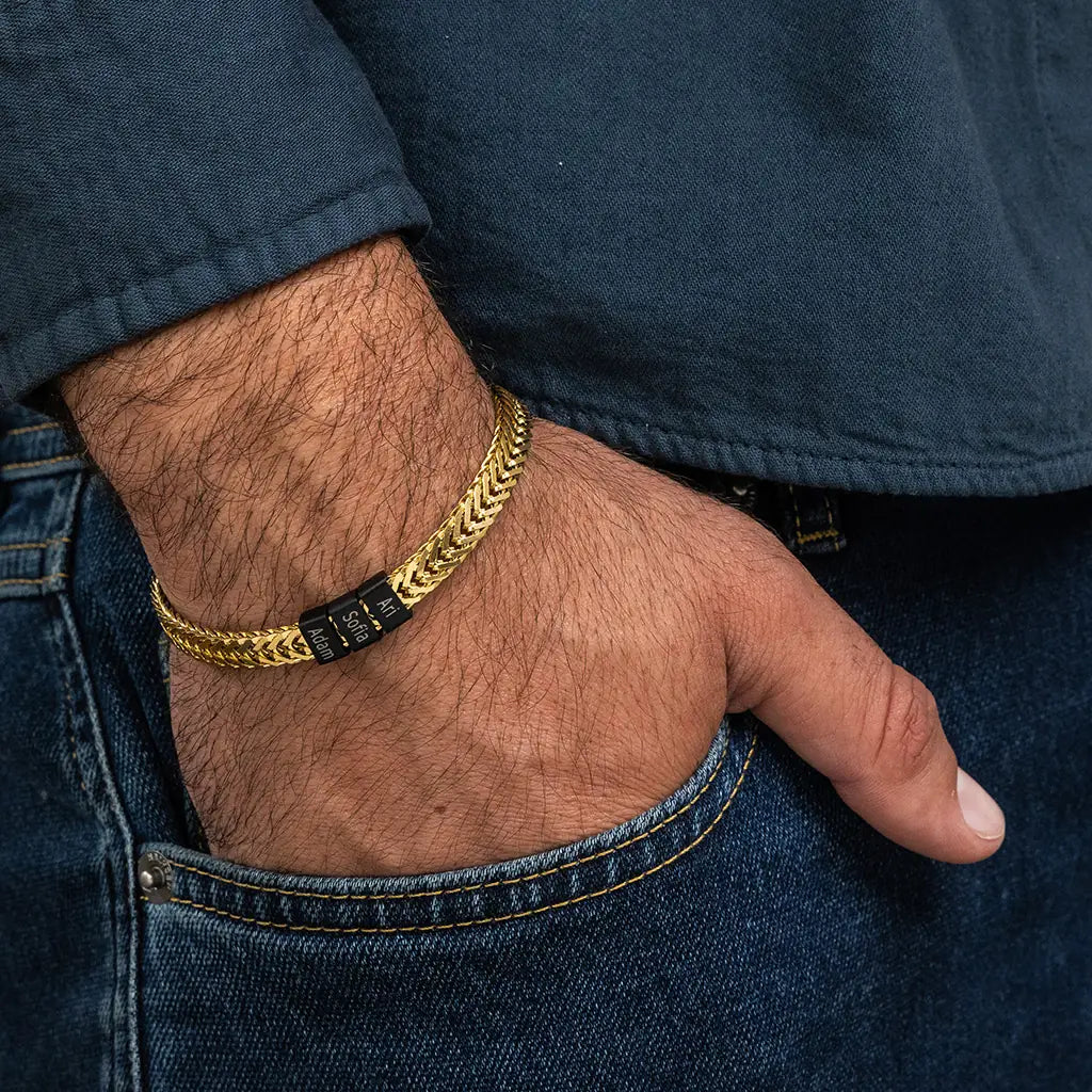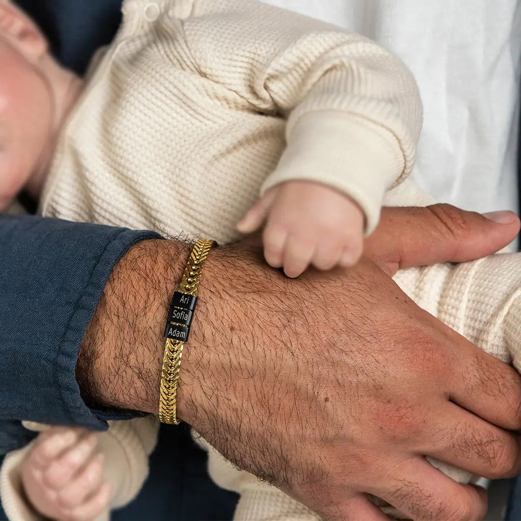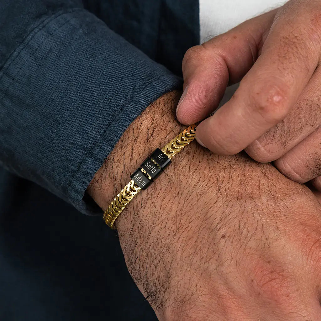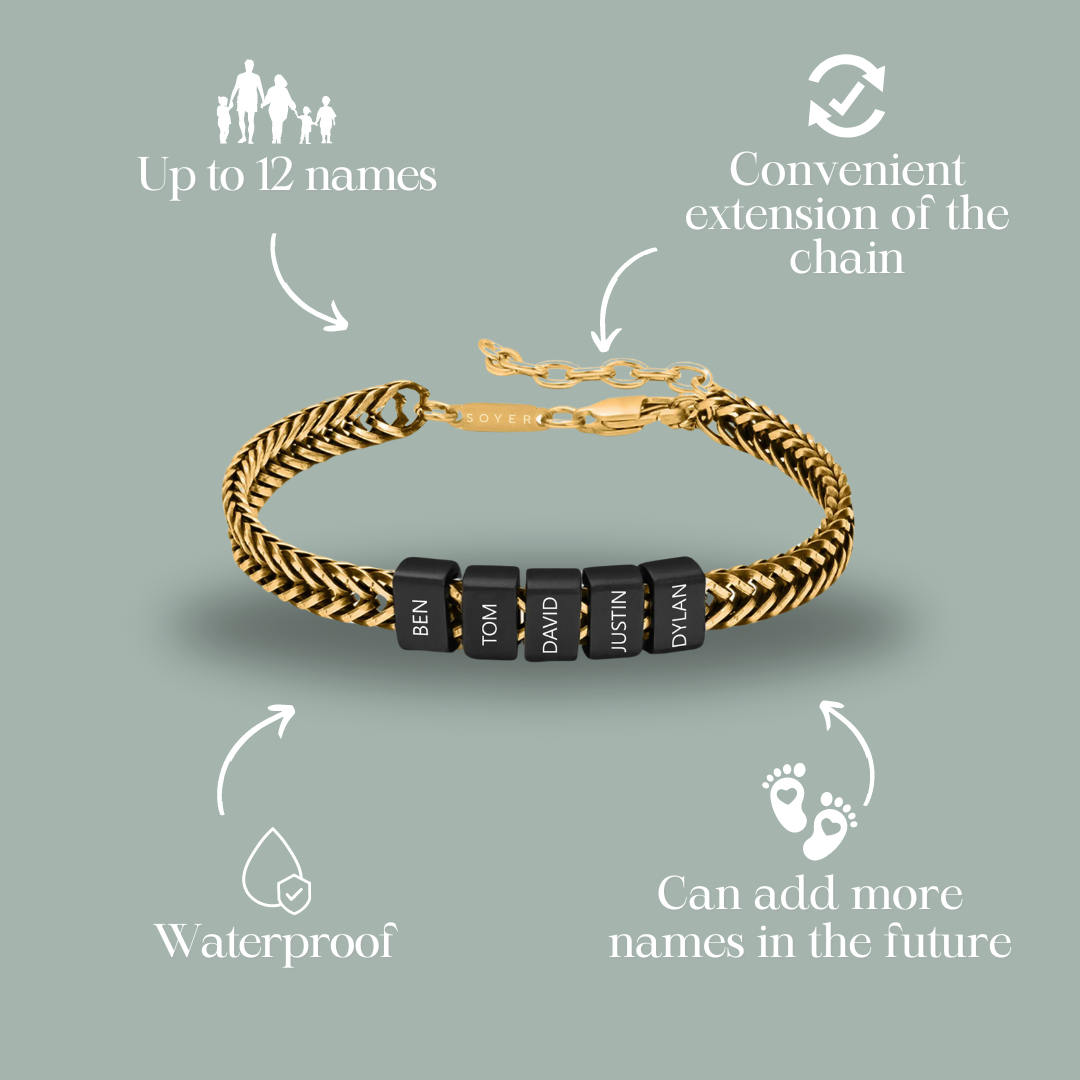 Dan Bracelet - Dad Bracelet with kid's names - Gold with Black Beads