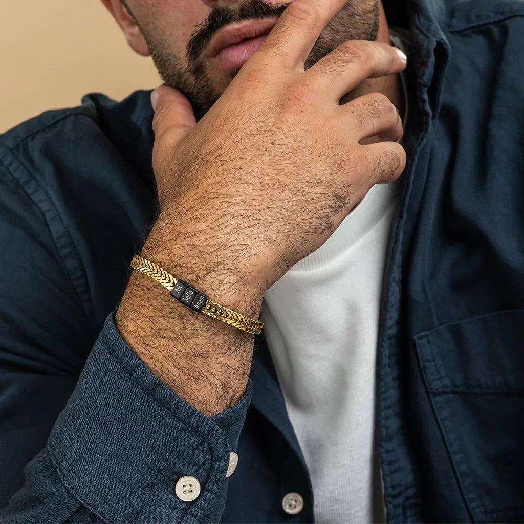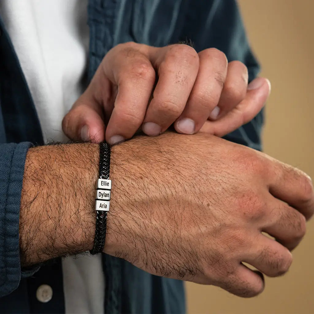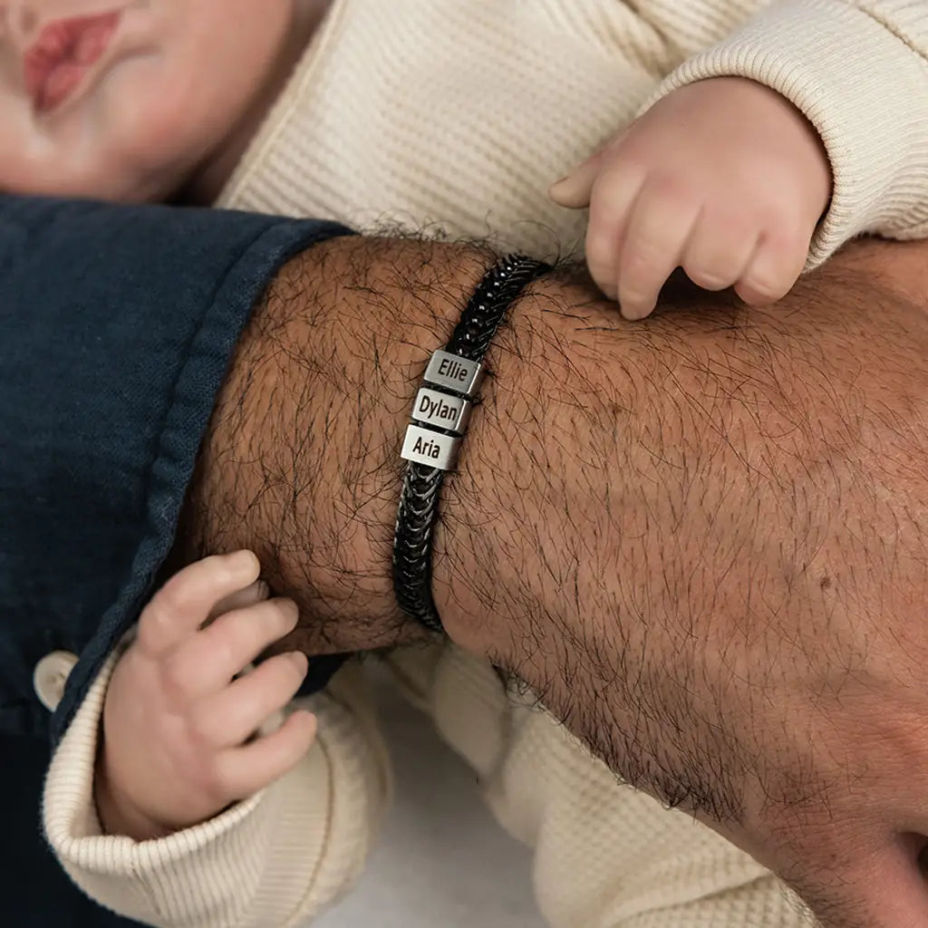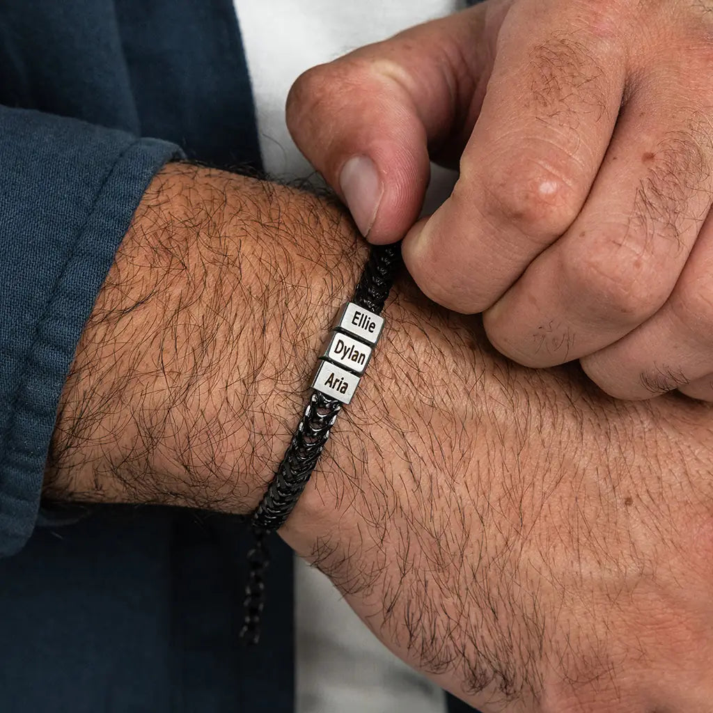 Dan Bracelet - Dad Bracelet with kid's names - Gold with Black Beads