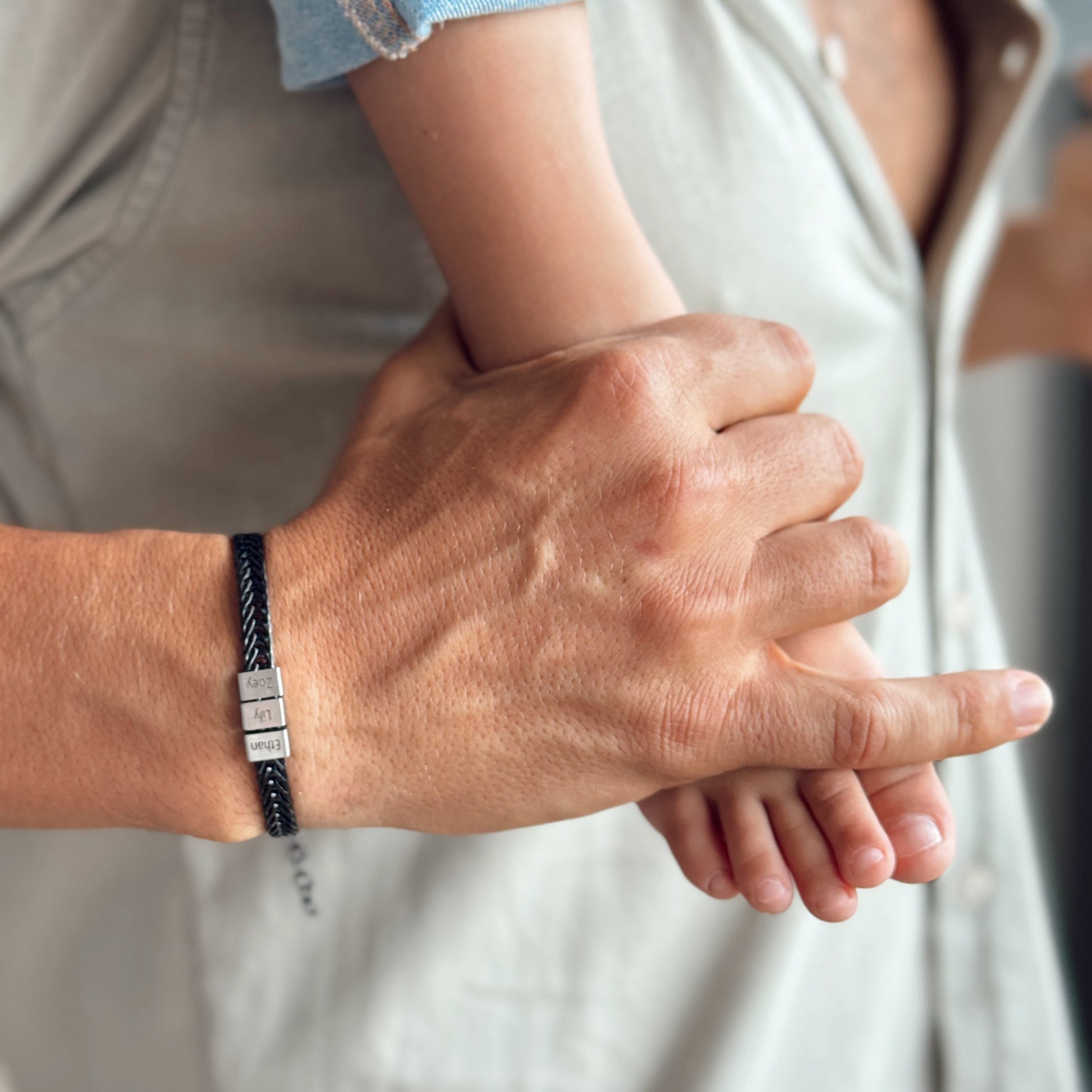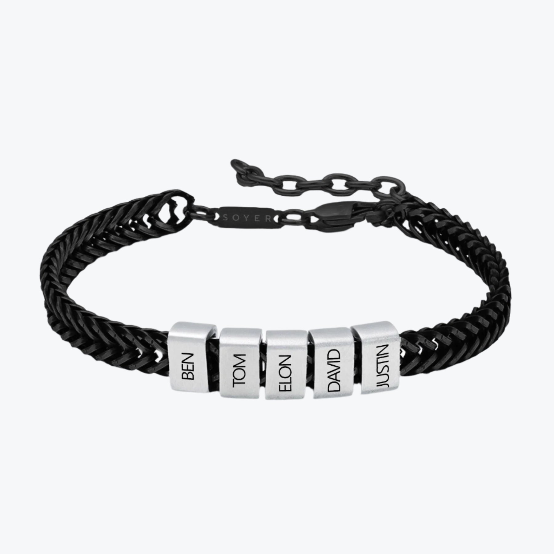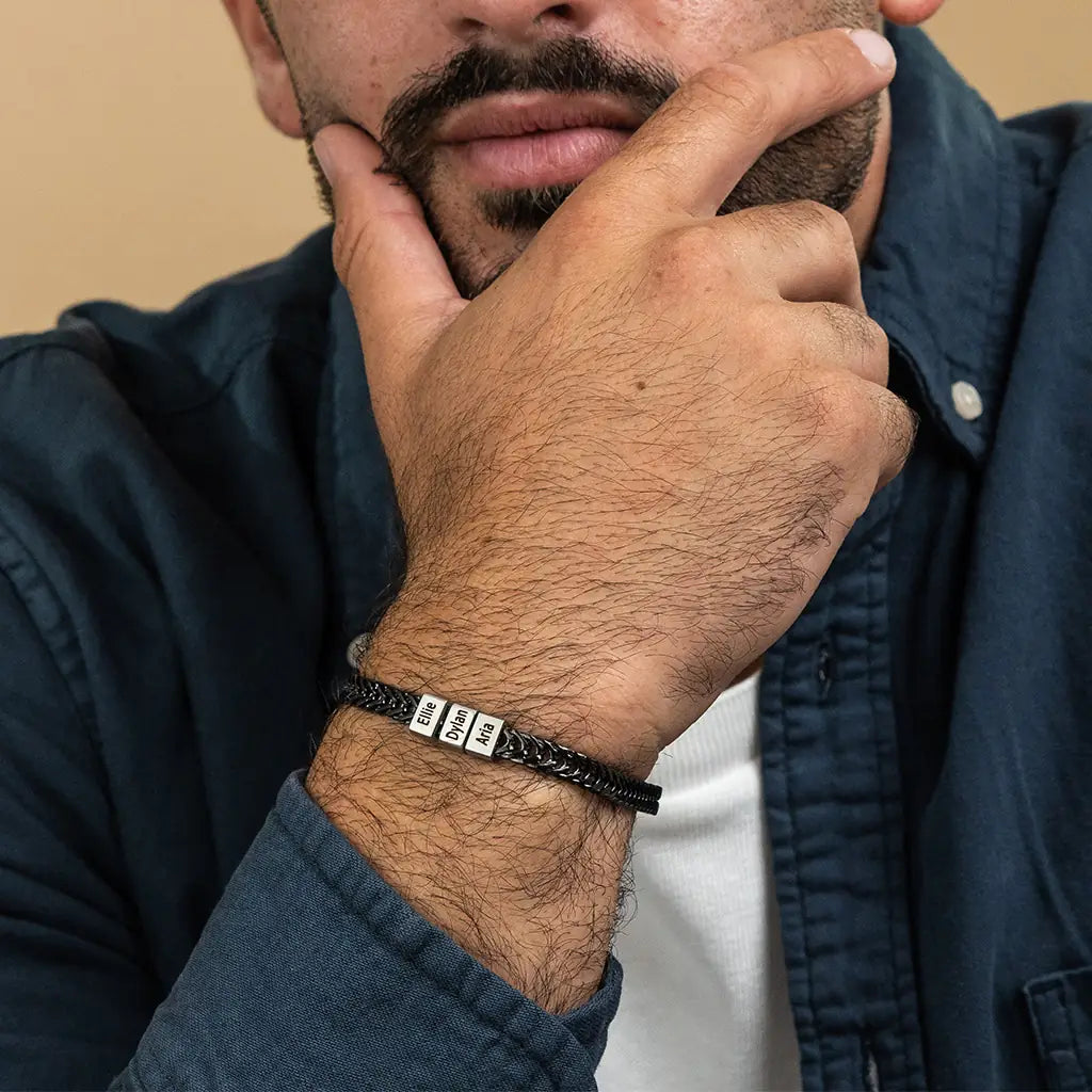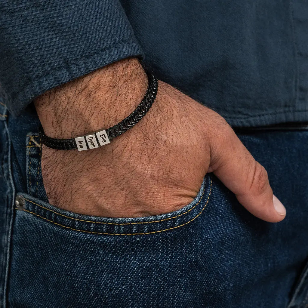 Dan Bracelet - Dad Bracelet with kid's names - Gold with Black Beads